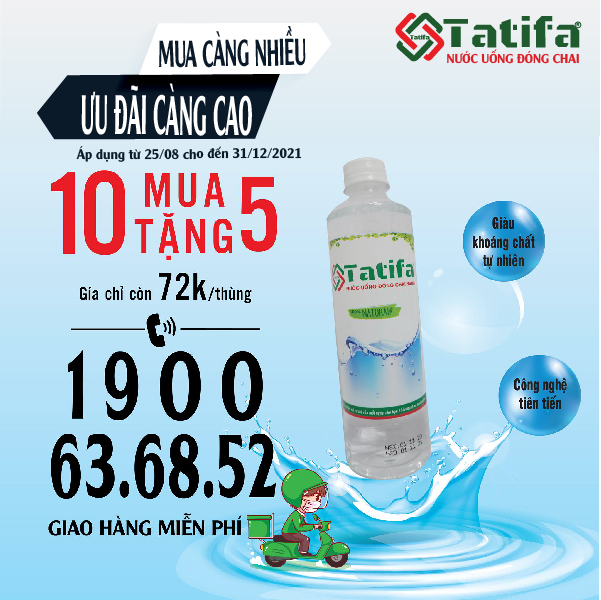 Khuyến mãi dành riêng cho sản phẩm nước uống đóng chai Tatifa 24 chai 500ml