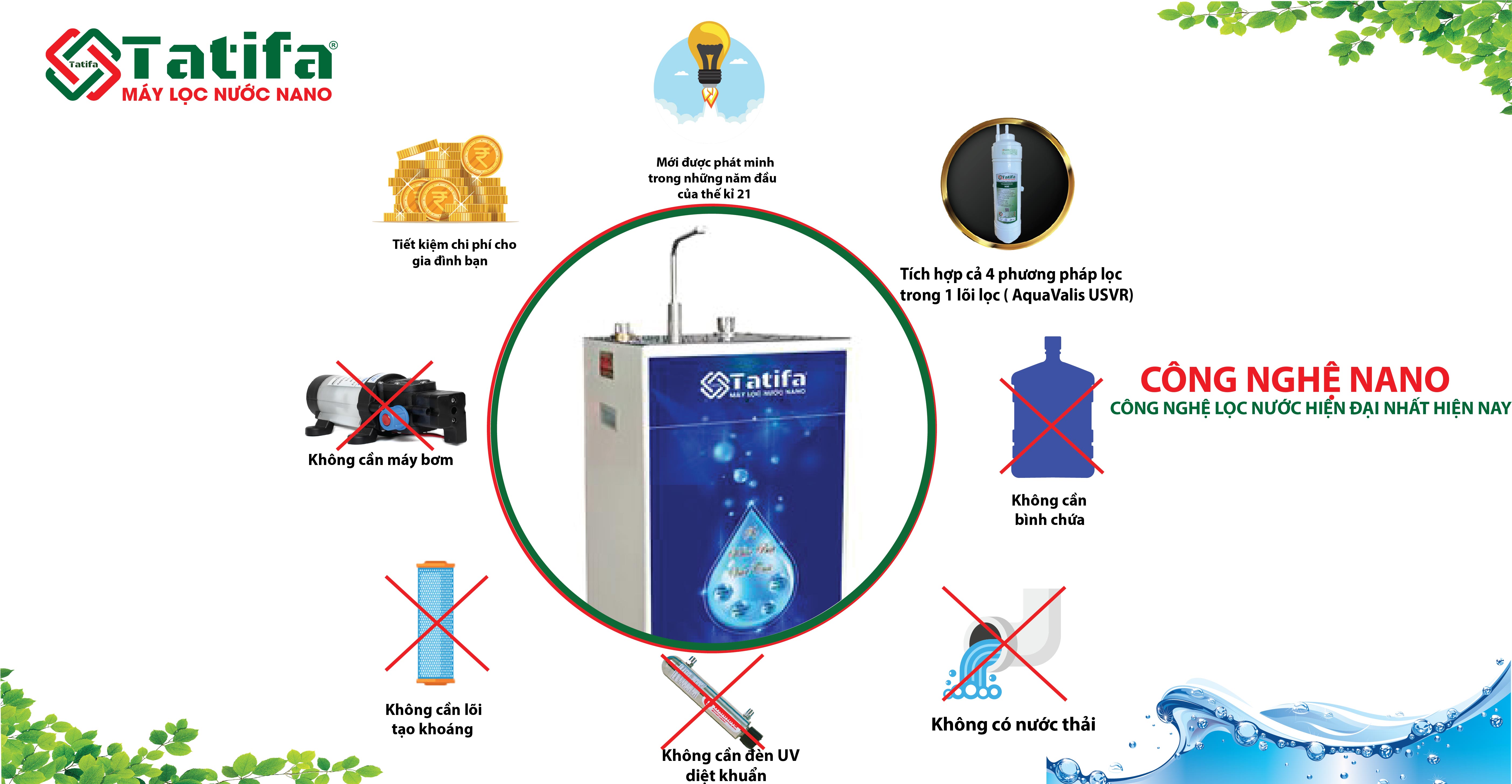 Nhắc đến máy lọc nước Nano Tatifa không thể bỏ qua các ưu điểm nổi bật như: