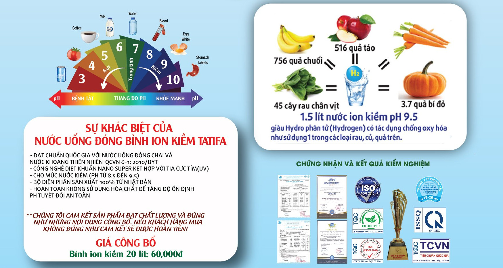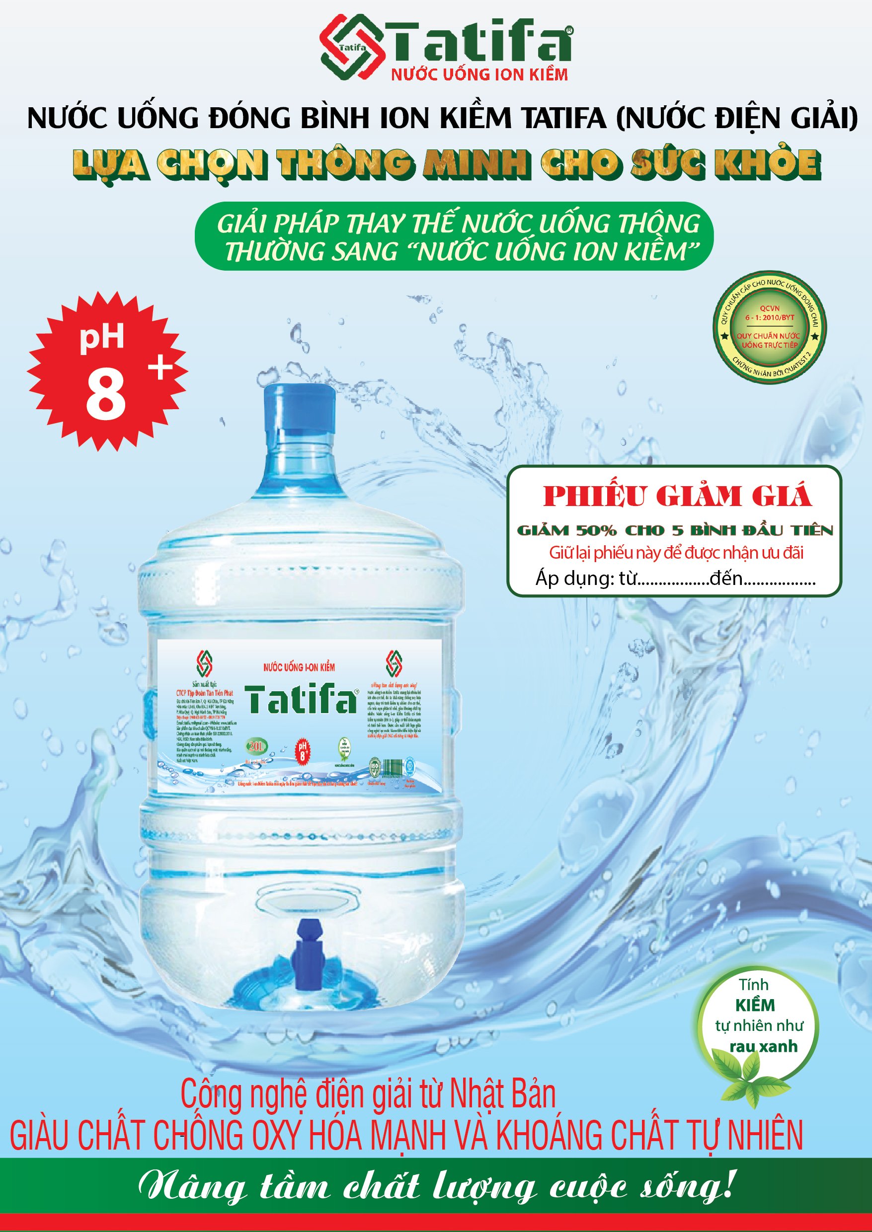 Nước uống đóng bình I-ON kiềm Tatifa là sản phẩm nước uống ion kiềm của Công ty CP Tập Đoàn Tân Tiến Phát, Được sản xuất kết hợp giữa công nghệ lọc nước Nano tiên tiến hiện đại và thiết bị điện giải OSG nổi tiếng từ Nhật Bản.