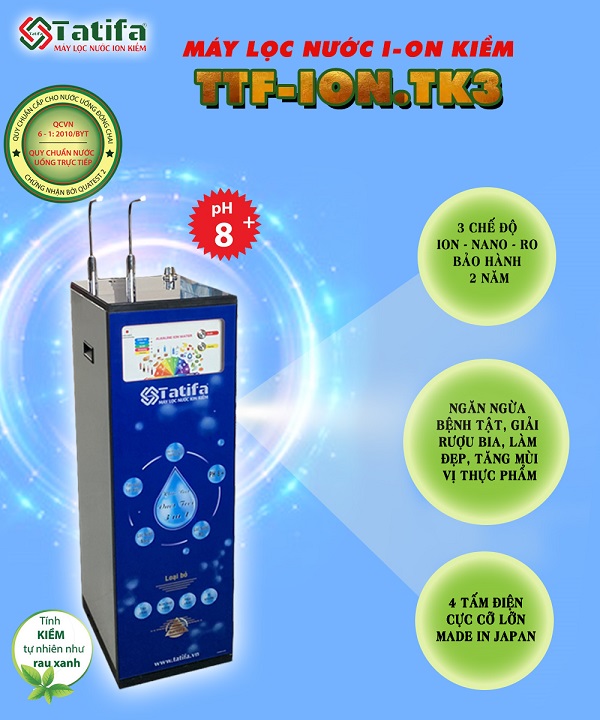 Trình làng máy lọc nước Ion kiềm Tatifa TTF-ION.TK3 & TTF-ION.TN4 – hội tụ 3 công nghệ lọc nước ION KIỀM – NANO – RO và chế độ nóng chỉ trong 1 chiếc máy, đáp ứng nhu cầu sử dụng nước uống không chỉ đơn thuần là giải khát mà còn đầy đủ khoáng chất, hydrogen giúp xây dựng cơ thể khỏe mạnh, trẻ đẹp từ bên trong.