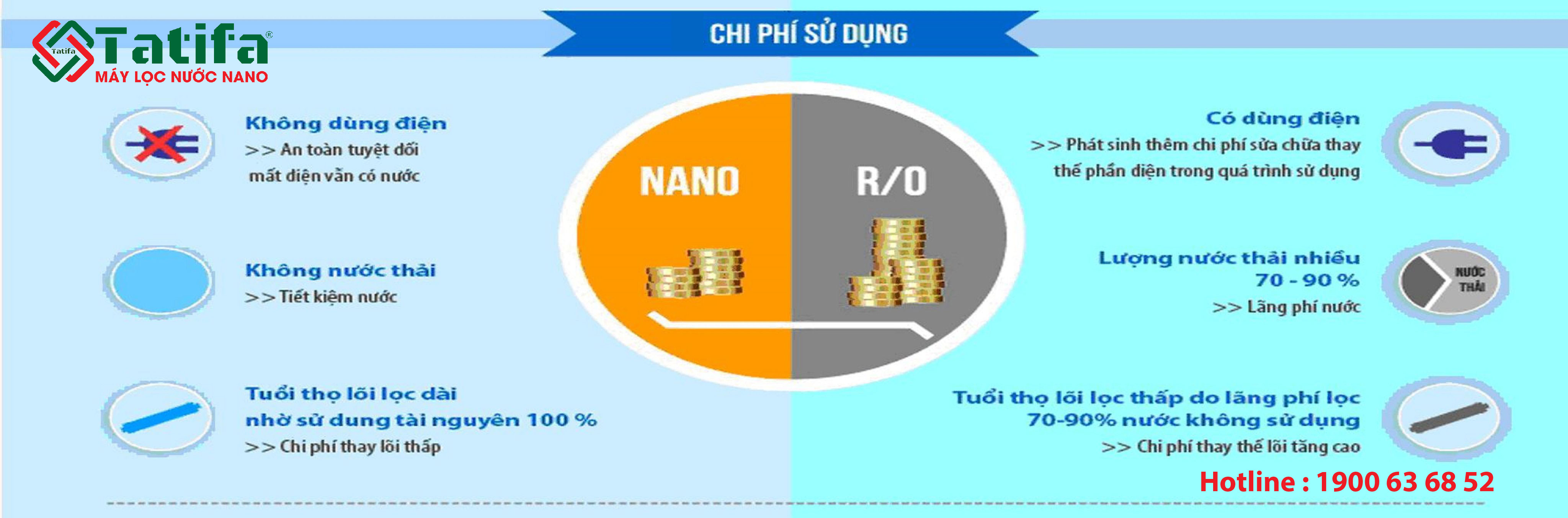 Máy lọc nước Nano : Sử dụng áp lực nước cấp để lọc nên không cần sử dụng điện ==> An toàn tuyệt đối cho người sử dụng. Cấu tạo máy rất đơn giản nên khách hàng tiết kiệm được chi phí do không tốn tiền điện, lõi lọc (số lượng lõi lọc rất ít) và khách hàng có thể tự thay lõi tại nhà giúp tiết kiệm tối đa chi phí bảo dưỡng.