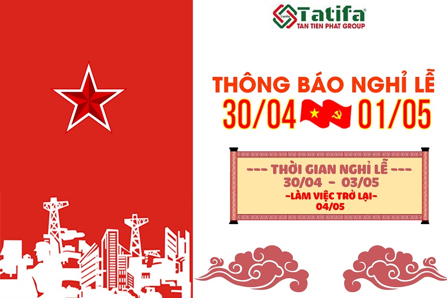 Nhân dịp ngày lễ Giải phóng Miền Nam và Quốc tế Lao động 30/4 - 1/5, công ty cổ phần tập đoàn Tân Tiến Phát xin kính chúc Quý khách hàng, đối tác một kỳ nghỉ vui vẻ, mạnh khỏe và ý nghĩa.