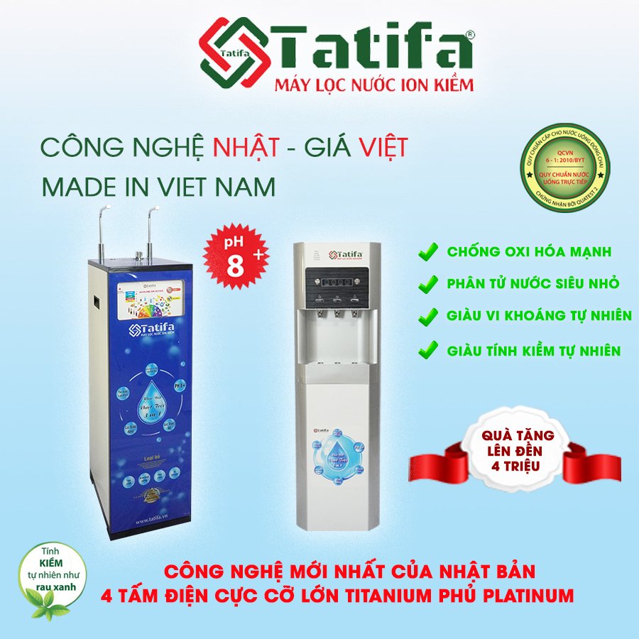 Hiện nay trên thị trường đã xuất hiện rất nhiều đơn vị cung cấp các dòng máy lọc nước ion kiềm, máy điện giải, máy tạo nước ion kiềm. Tuy nhiên, Tatifa là đơn vị sản xuất máy lọc nước ion kiềm, thương hiệu Việt với chất lượng đạt chuẩn nước uống QCVN6-1:2010/BYT, máy tạo nước ion kiềm sử dụng hệ thống điện phân nhập khẩu trực tiếp từ Nhật Bản, tích hợp 3 công nghệ lọc nước ion kiềm - nano - ro trong 1 chiếc máy và hệ thống nước nóng, chiếm được nhiều thiện cảm của người tiêu dùng.